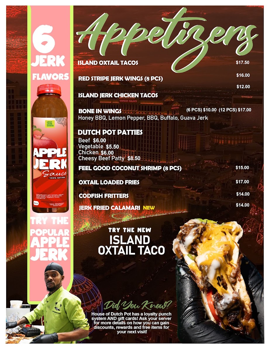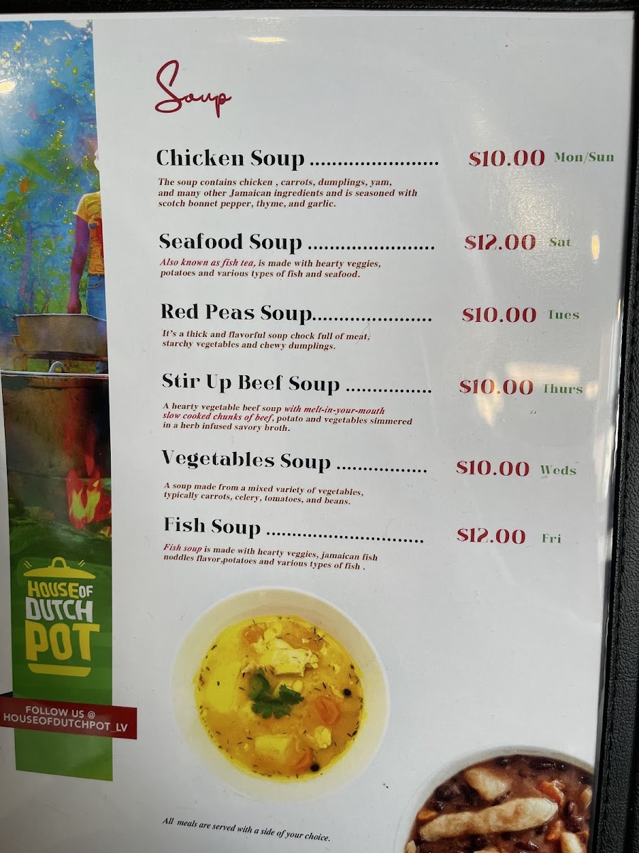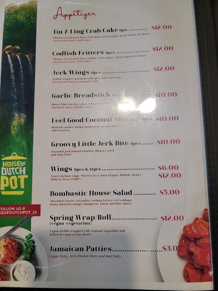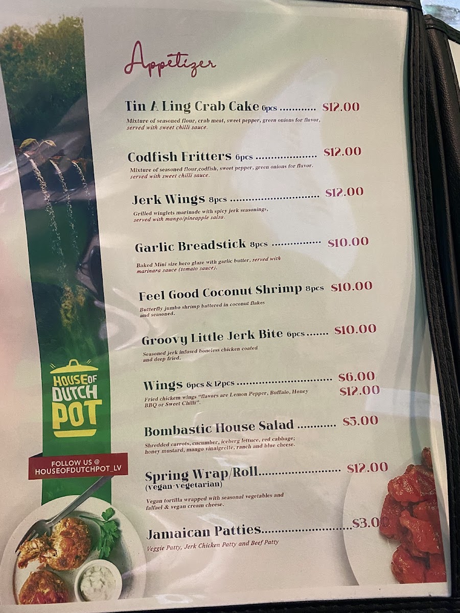 Welcome to House of Dutch Pot Las Vegas, where the vibrant flavors of the Caribbean come alive! Nestled at 4255 Durango Dr, this gem offers an authentic culinary experience that transports you straight to Jamaica. The enticing menu features mouth-watering dishes like brown stew chicken, curry goat, and the unforgettable oxtail, each prepared to perfection. Guests rave about the jerk wings and delightful beef patties, showcasing the rich heritage of Caribbean cuisine.